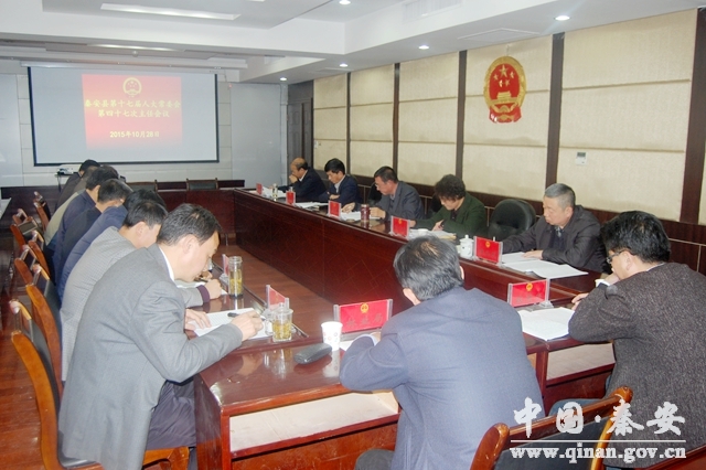 10月28日,秦安縣第十七屆人大常委會第四十七次主任會議召開,會議由縣人大常委會主任郭海軍主持,縣人大常委會副主任劉小秦、陳秦生、楊尚武、宋捷出席會議。縣政府辦公室、林業(yè)局、發(fā)改局、財政局、水務(wù)局、農(nóng)業(yè)局、果業(yè)局、縣人大常委會辦公室及各工委負(fù)責(zé)人列席了會議。會議聽取了縣政府關(guān)于全縣林業(yè)生態(tài)工程建設(shè)情況的報告。