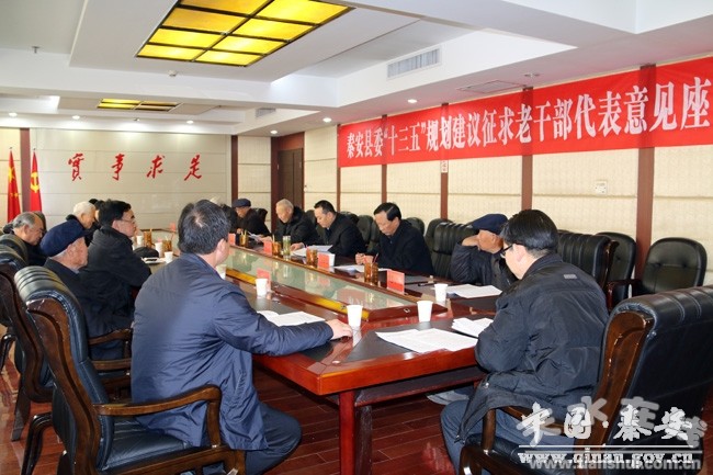 12月18日上午,秦安縣委召開老干部座談會,就全縣國民經(jīng)濟和社會發(fā)展第十三個五年規(guī)劃建議聽取老干部代表的意見建議。縣委常委、組織部長楊棟主持會議,部分老干部代表參加座談會。