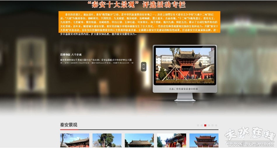 充分利用“相約桃鄉(xiāng)秦安·感受美麗田園”旅游采風(fēng)活動(dòng),積極開展了生態(tài)旅游資源宣傳推介。組織開展“秦安十大景觀”評(píng)選活動(dòng),對(duì)入圍的30多個(gè)景觀通過網(wǎng)絡(luò)進(jìn)行展播,并編輯出版了《秦安景觀》外宣品畫冊(cè)。利用“全國百名社長總編聚焦天水”秦安縣大型新聞采訪活動(dòng),對(duì)全縣特色文化旅游、林果產(chǎn)業(yè)等進(jìn)行了一次集中宣傳報(bào)道。邀請(qǐng)?zhí)焖诰對(duì)鳳山景區(qū)、葫蘆河生態(tài)園、劉坪何灣桃花景觀園進(jìn)行了航拍展播。于4月初開通了縣委外宣辦新浪微博“微博秦安”和微信公眾平臺(tái)“魅力秦安”兩個(gè)新媒體平臺(tái),為廣大網(wǎng)民迅速、及時(shí)、便捷地獲取信息提供了全新的閱讀平臺(tái),已成為宣傳推介秦安的重要窗口。通過多種形式的宣傳推介,進(jìn)一步提高了秦安特色文化旅游品牌的知名度。