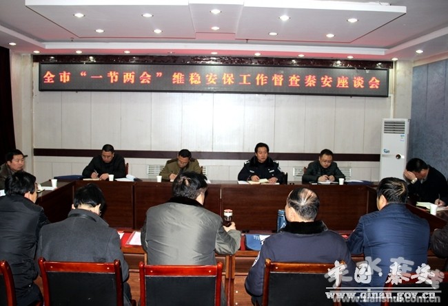 在隨后召開的座談會上,督查組認(rèn)為秦安縣委、縣政府高度重視“一節(jié)兩會”維穩(wěn)安保工作,對上級的會議文件精神領(lǐng)會深刻,安排部署到位,工作要求嚴(yán)格,行動迅速,各部門齊抓共管、通力配合,措施得力,群眾參與面廣,工作成效明顯,維護了全縣社會大局的平穩(wěn)安定。督查組要求,下一步要進一步提高認(rèn)識,對維穩(wěn)安保工作再安排、再部署,確保 “一節(jié)兩會”維穩(wěn)安保工作的各項措施落到實處。著力抓好八個專項整治行動,社會面的巡邏管控,應(yīng)急處突,維穩(wěn)情報信息的搜集、研判、上報、處置,值班備勤等重點工作措施的落實,要把維穩(wěn)安保任務(wù)分解細化,層層交任務(wù)、靠責(zé)任,明確每一個領(lǐng)域、每一個行業(yè)、每一個單位、每一個崗位的職責(zé)任務(wù),嚴(yán)格責(zé)任考核,強化問責(zé),把工作做細做實,確!耙还(jié)兩會”期間全縣社會大局持續(xù)和諧穩(wěn)定。
