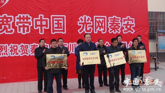1月29日上午,秦安縣精準(zhǔn)扶貧光網(wǎng)寬帶建設(shè)示范鄉(xiāng)鎮(zhèn)和示范村授牌儀式在西川鎮(zhèn)牌樓村文化廣場舉行,這標(biāo)志著秦安農(nóng)村信息化精準(zhǔn)扶貧工作取得了階段性成果?h委副書記、縣長程江芬,縣委常委、副縣長郭雙江,副縣長劉殿龍,各鄉(xiāng)鎮(zhèn)分管領(lǐng)導(dǎo)及縣政府辦、工信局、秦安電信分公司等相關(guān)部門負(fù)責(zé)人,西川鎮(zhèn)牌樓村村民代表參加了授牌儀式。