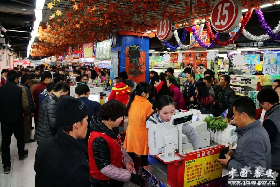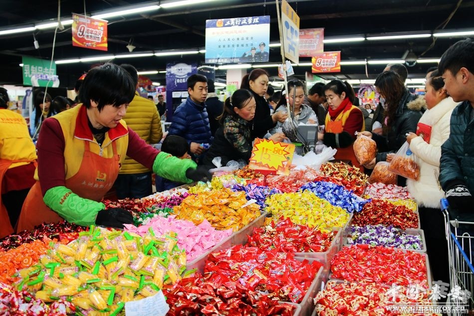在縣城各大商場(chǎng)里,濃濃年味已是撲面而來(lái)。各種各樣的年貨已早早占據(jù)了超市的一席之地,年貨專區(qū)被裝點(diǎn)成大紅色,相當(dāng)喜慶,吸引顧客紛紛選購(gòu)。
