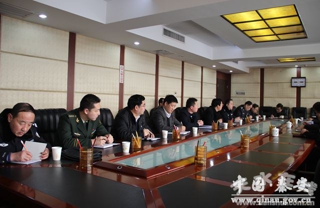 為進一步做好春節(jié)文化活動及全縣“兩會”期間的維穩(wěn)安保工作,確保全縣社會治安秩序持續(xù)穩(wěn)定,2月16日,秦安縣召開了春節(jié)文化活動及全縣“兩會”期間維穩(wěn)安保工作會議。縣委常委、政法委書記楊喜春主持會議并作了安排部署,縣政府副縣長扇忠瑜、縣人大副主任劉小秦,縣委辦、縣人大辦、縣政府辦、縣政協(xié)辦、縣委宣傳部、縣委政法委、縣公安局、縣文廣局、縣信訪局、縣綜合執(zhí)法局、縣交警大隊、縣運管局和縣消防隊等有關(guān)單位負責人參加了會議。