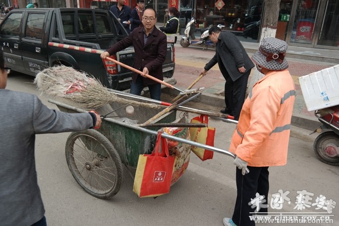 活動(dòng)中,各單位干部職工在各自承包片區(qū),拿著鐵锨、掃帚、夾子、簸箕、刮刀、毛巾等工具,對(duì)城區(qū)主要干道、背街小巷、公共場所周圍的街面垃圾,生活污水,馬路兩側(cè)雜草和堆積的建筑物料進(jìn)行了認(rèn)真打掃清運(yùn),對(duì)衛(wèi)生死角、積存垃圾徹底清掃,對(duì)亂涂亂畫、亂貼廣告等“牛皮癬”也進(jìn)行集中清潔清理,對(duì)各類公共設(shè)施進(jìn)行擦洗。干部職工將本單位室內(nèi)外打掃得清潔衛(wèi)生,機(jī)關(guān)企事業(yè)單位面貌煥然一新,對(duì)城區(qū)街道、地面、樓面、店面等三維空間進(jìn)行了全方位的綜合治理。住建局(環(huán)衛(wèi)所)、綜合執(zhí)法局、交警隊(duì)負(fù)責(zé)人組成的城區(qū)環(huán)境衛(wèi)生督查組,深入鳳山景區(qū)、解放路、街泉街、東濱河路、南小河便民橋、城南片區(qū)、明清街等區(qū)域,對(duì)城區(qū)環(huán)境衛(wèi)生綜合整治工作開展情況進(jìn)行了現(xiàn)場督查,并協(xié)調(diào)解決了相關(guān)問題,促進(jìn)工作任務(wù)的全面落實(shí)。