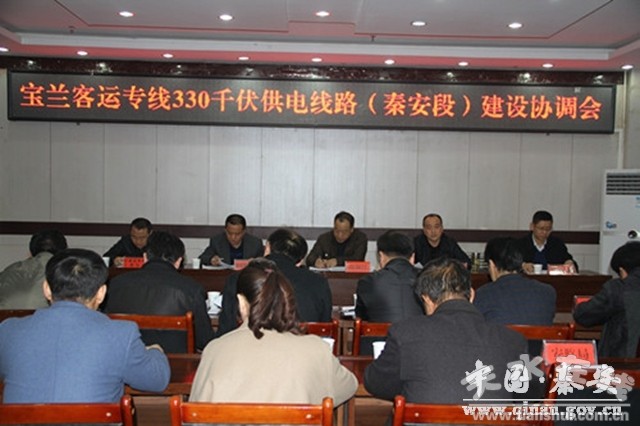 近日,秦安縣召開寶蘭客專330千伏供電線路建設(shè)協(xié)調(diào)會(huì),秦安縣委常委、縣政府副縣長(zhǎng)郭雙江,天水供電公司副總經(jīng)理安貴元,甘肅送變電工程公司項(xiàng)目經(jīng)理、市公司建設(shè)部和縣城郊供電公司負(fù)責(zé)人,相關(guān)鄉(xiāng)鎮(zhèn)和部門負(fù)責(zé)人參加了會(huì)議。