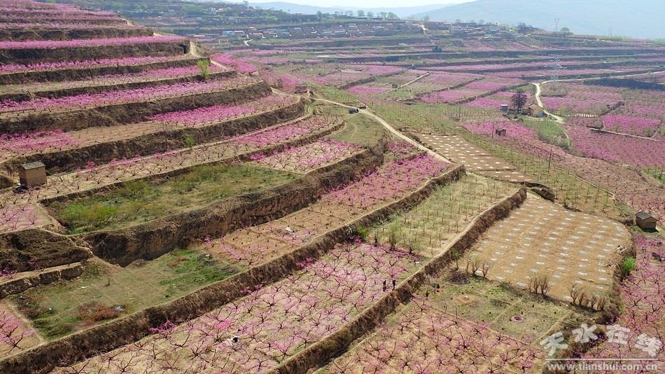 天水在線航拍“中國美麗田園·秦安劉坪何灣桃花景觀”(圖)