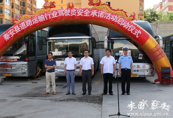 為了進(jìn)一步落實(shí)道路運(yùn)輸企業(yè)安全生產(chǎn)主體責(zé)任,強(qiáng)化駕駛員安全意識(shí)和職業(yè)責(zé)任感。6月28日,秦安縣汽車站舉行全縣運(yùn)輸行業(yè)駕駛員安全承諾活動(dòng),縣政府副縣長(zhǎng)劉殿龍及縣安監(jiān)、運(yùn)管、公安交警、駕駛員代表、運(yùn)輸企業(yè)負(fù)責(zé)人和志愿者共260余人參加了啟動(dòng)儀式。