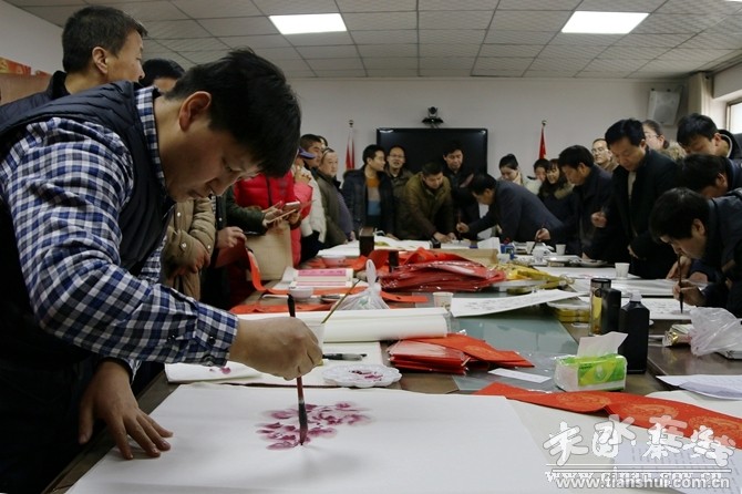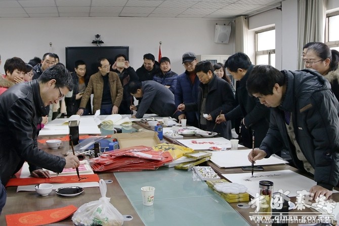 發(fā)放儀式結束后,學院書畫協(xié)會會員在西川鎮(zhèn)政府三樓會議室現(xiàn)場揮毫潑墨,為聯(lián)系點群眾現(xiàn)場創(chuàng)作書畫作品100余幅,對聯(lián)300余幅,帶去了學院黨政領導和廣大師生對雙聯(lián)點群眾的關懷,為他們提前送上新春的祝福,增添了節(jié)日喜慶祥和的氣氛。