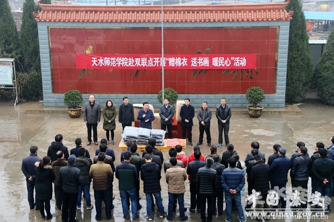 1月6日,天水師范學院黨委書記馬建東、黨委副書記師平安帶領學院組織部、工會、團委、雙聯(lián)辦負責人及學院書畫協(xié)會會員一行20多人,來到秦安縣西川鎮(zhèn)開展“贈棉衣、送書畫、暖民心”雙聯(lián)慰問活動。