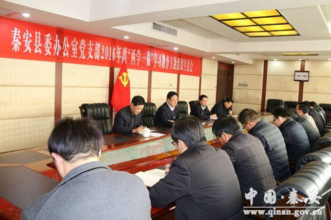1月23日,秦安縣委辦公室黨支部召開2016年度“兩學(xué)一做”學(xué)習(xí)教育專題組織生活會?h委書記王東紅,副書記裴貴軍以普通黨員身份參加?h委組織部有關(guān)負(fù)責(zé)同志應(yīng)邀指導(dǎo)會議。