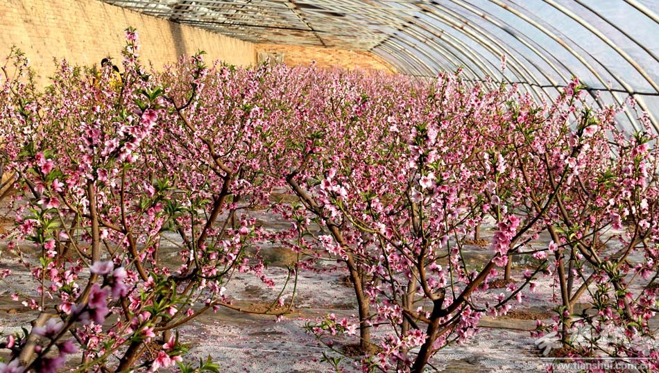 棚外春寒料峭,棚內(nèi)桃花滿枝。