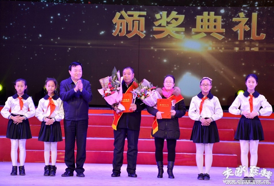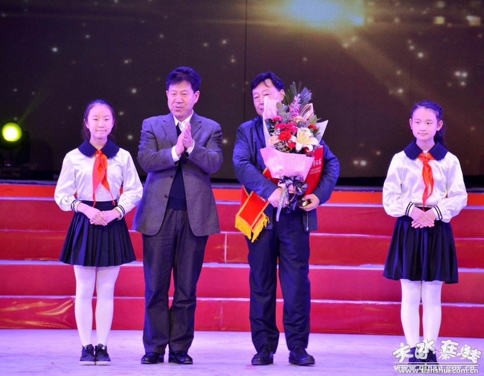 。ㄊ姓䥇f(xié)主席張明泰為"奉獻天水·十大人物”獲得者侯天才頒獎)