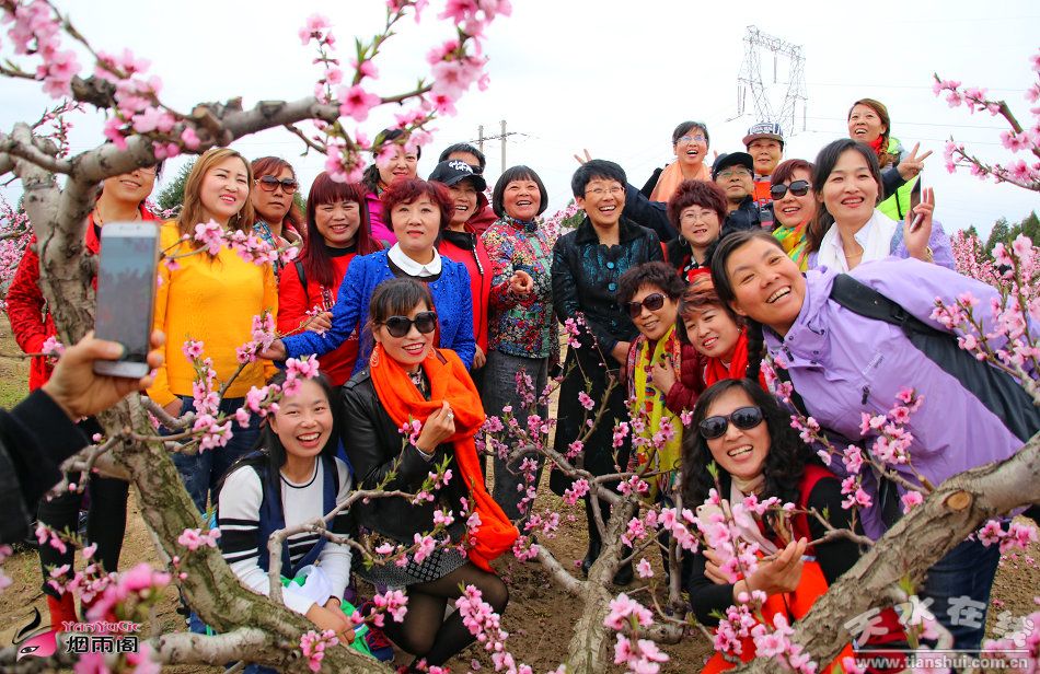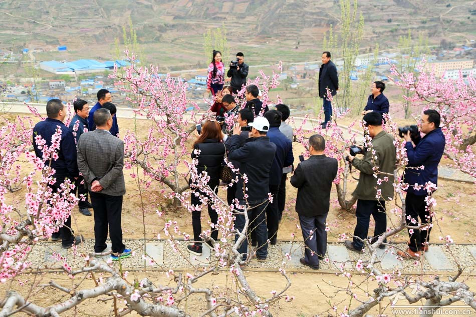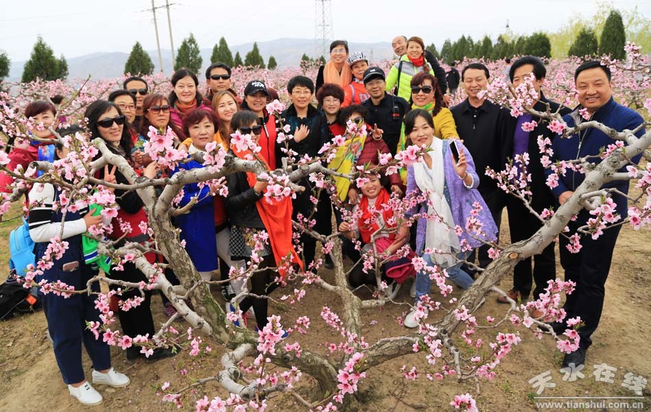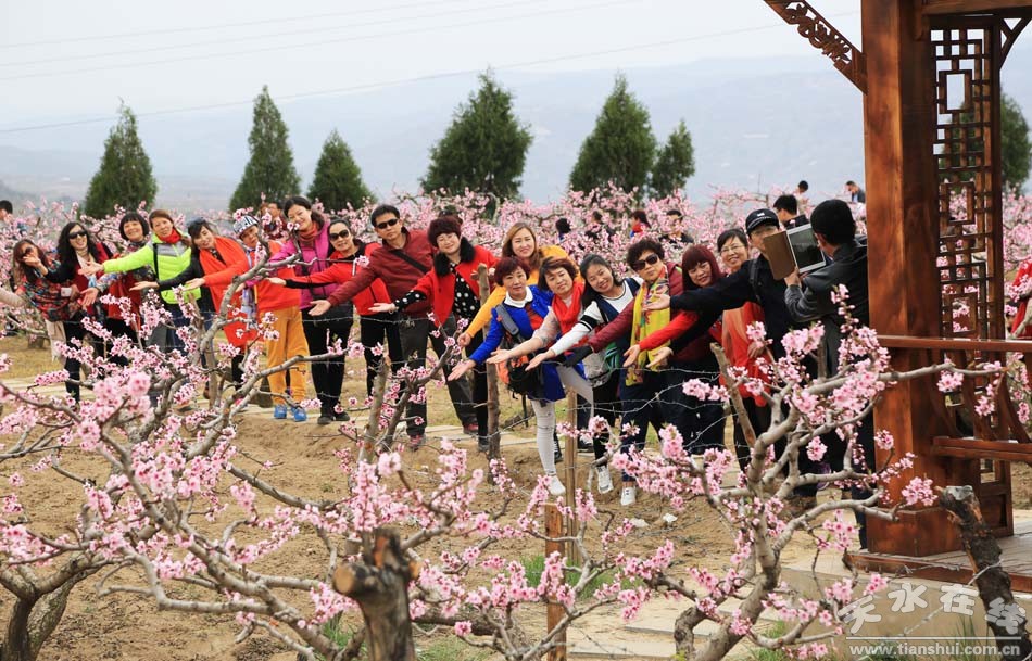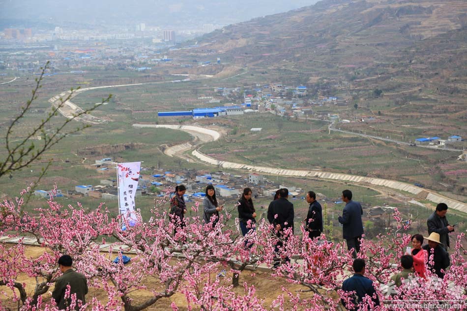 在桃園里,還有一些來自白銀的游客,通過交談得知,她們是看到了央視7套的宣傳片,被秦安桃花的壯麗美景深深吸引,于是有人在QQ群里開始組織,大家紛紛報(bào)名,最終商定在這個(gè)周末來秦安賞花。