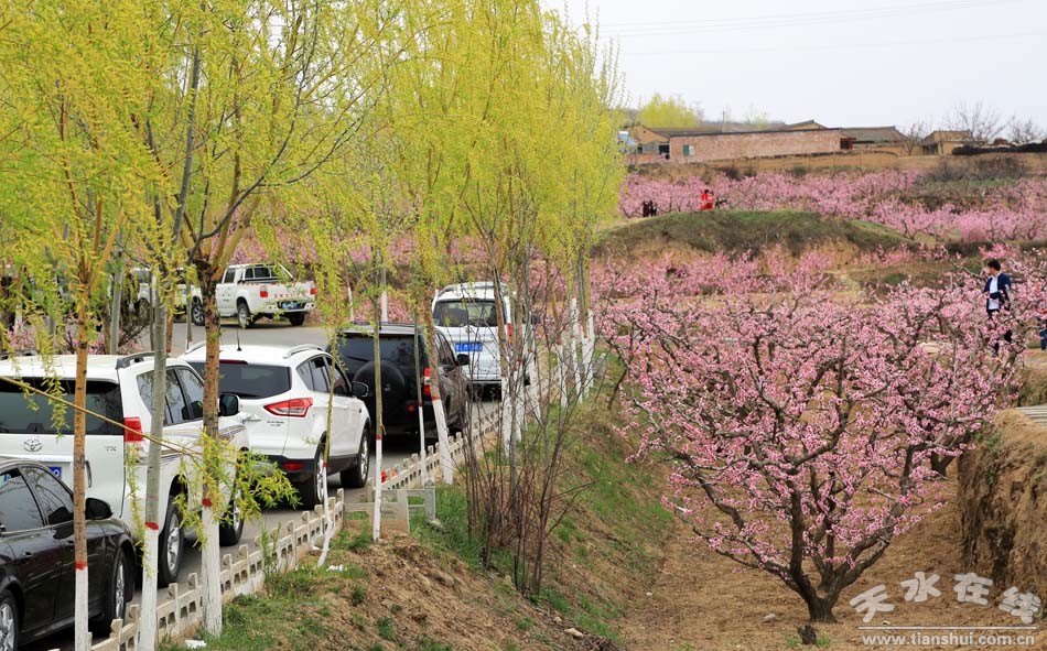 天水在線4月15日?qǐng)?bào)道 連日來,在秦安縣西川李堡、劉坪秦洼、西川宋場(chǎng)等桃園景區(qū)的入口處停滿了游客車輛,外地車牌到處可見,漸次盛開的六大桃園景區(qū)花艷如霞、游人如織。
