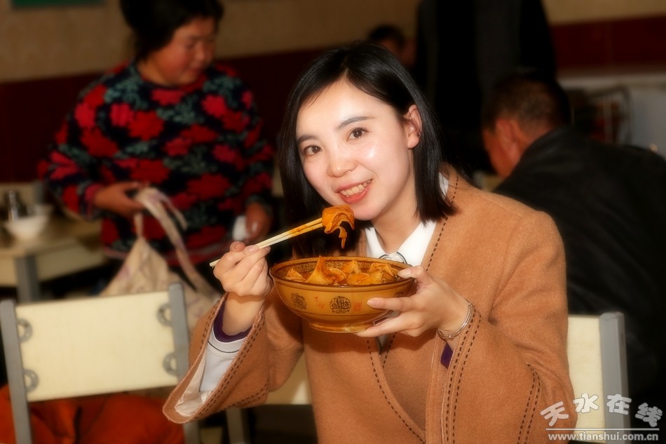 (秦安縣長(zhǎng)程江芬和來自白銀的游客合影留念 天水在線攝于4月15日)