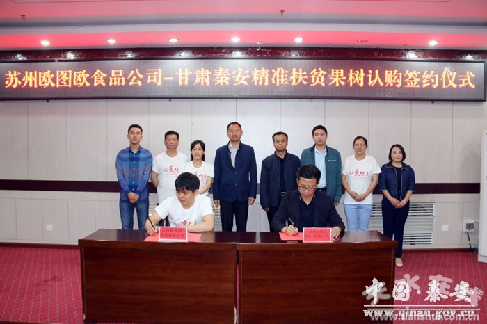 5月18日,蘇州歐圖歐食品有限公司與天水華園果業(yè)進出口有限公司果樹認購協(xié)議簽訂儀式在縣行政中心舉行。縣政府副縣長王玉安,縣政協(xié)副主席、扶貧辦主任高飛參加簽訂儀式。在簽訂儀式上,兩家企業(yè)共簽訂了5萬棵的果樹認購協(xié)議。