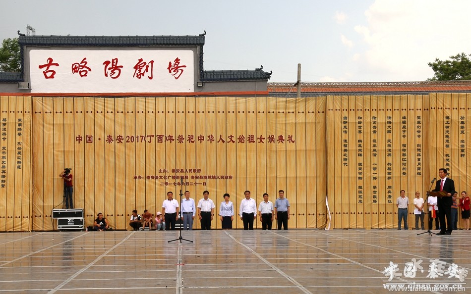 6月19日下午,中國(guó)·秦安2017(丁酉)年祭祀中華人文始祖女?huà)z典禮在隴城鎮(zhèn)女?huà)z廣場(chǎng)進(jìn)行彩排?h領(lǐng)導(dǎo)王東紅、郭海軍、程江芬、楊仁義、徐東明、楊喜春、張耀清、于劍鋒等參加彩排活動(dòng),并對(duì)祭祀典禮的各項(xiàng)活動(dòng)作了指導(dǎo)。當(dāng)天上午,所有工作及演出人員全部到位,彩排嚴(yán)格按照祭祀程序進(jìn)行,依次為奏樂(lè)、擊鼓鳴鐘、恭讀祭文、鞠躬敬祭、樂(lè)舞告祭、敬獻(xiàn)花籃。