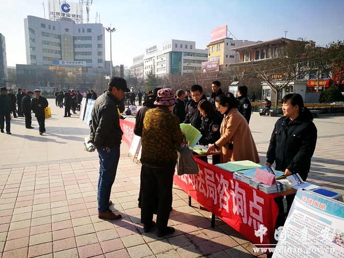 本次活動(dòng),共向群眾散發(fā)《黨的十九大精神摘要》、《憲法知識(shí)手冊(cè)》、《法律援助手冊(cè)》等法律宣傳資料3000余份,法治讀本1000余本,宣傳冊(cè)2000余份,展出法制展板10余塊,設(shè)立咨詢臺(tái)8個(gè),懸掛橫幅10余條,解答群眾法律咨詢80余人次,得到民眾一致好評(píng),取得了良好的社會(huì)效果,對(duì)進(jìn)一步增強(qiáng)公民的法律意識(shí)和法治觀念,起到了積極的作用。 |