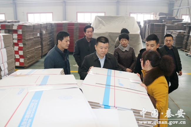 2月27日,天水市副市長郝文杰先后深入秦安縣福雨塑業(yè)有限公司、泰達(dá)包裝印務(wù)發(fā)展有限公司,通過實(shí)地察看、聽取匯報、詢問交流等方式,就縣域工業(yè)經(jīng)濟(jì)運(yùn)行情況進(jìn)行了調(diào)研。秦安縣委副書記、縣長程江芬,縣委常委、常務(wù)副縣長王彥軍一同調(diào)研。