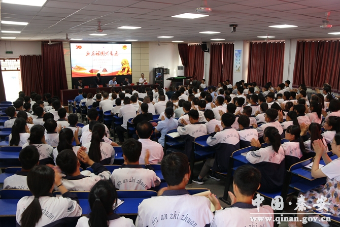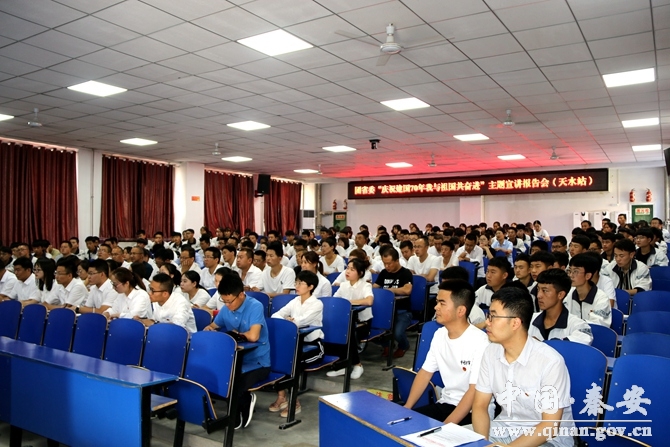 為深入學(xué)習(xí)貫徹習(xí)近平新時代中國特色社會主義思想和黨的十九大精神,隆重慶祝中華人民共和國成立70周年,8月15日,團省委“慶祝建國70年 我與祖國共奮進”主題宣講報告會(天水站)在秦安縣職校舉行。