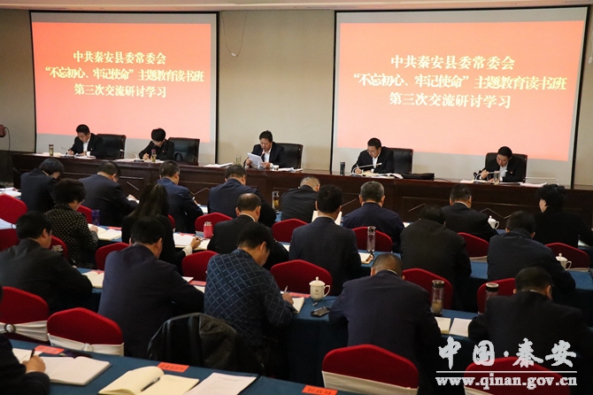 9月21日,秦安縣委常委會(huì)“不忘初心、牢記使命”主題教育讀書班舉行第三次交流研討?h領(lǐng)導(dǎo)王炤俊、肖江、辛召東、文斌、張耀清、李東海、高飛圍繞學(xué)習(xí)《習(xí)近平關(guān)于“不忘初心、牢記使命”重要論述選編》、《習(xí)近平新時(shí)代中國(guó)特色社會(huì)主義思想學(xué)習(xí)綱要》等內(nèi)容,從黨的政治建設(shè)、全面從嚴(yán)治黨、理想信念、宗旨意識(shí)、擔(dān)當(dāng)作為、政治紀(jì)律和政治規(guī)矩、黨性修養(yǎng)、廉潔自律八個(gè)方面,分別結(jié)合分管領(lǐng)域、崗位職責(zé)和工作實(shí)際作了交流發(fā)言。