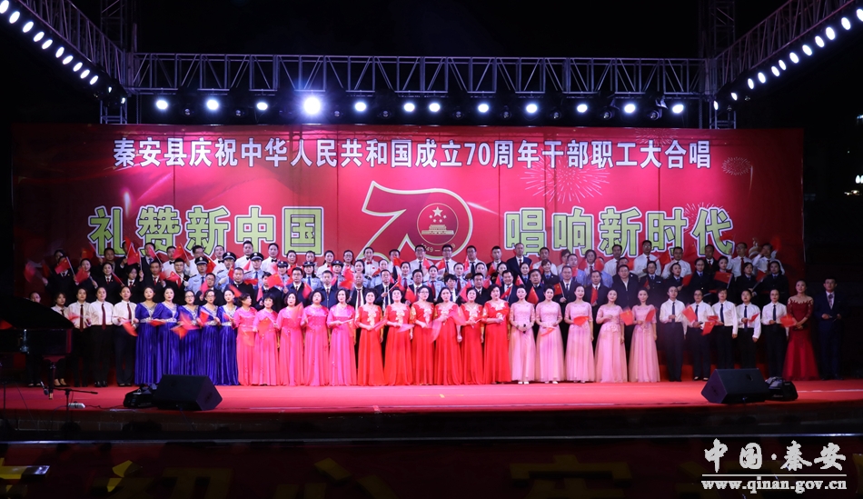 9月26日晚,由中共秦安縣委、秦安縣人民政府主辦,縣委宣傳部、縣文體廣電和旅游局、縣教育局、縣融媒體中心承辦的“禮贊新中國·唱響新時代”秦安縣慶祝中華人民共和國成立70周年干部職工大合唱在興國文化廣場舉行。
