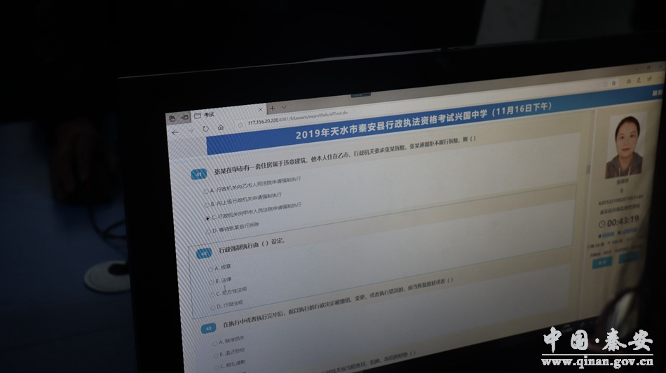 為切實加強對行政執(zhí)法人員資格管理,進一步規(guī)范行政執(zhí)法行為,11月16日,秦安縣舉行行政執(zhí)法人員綜合法律知識考試。