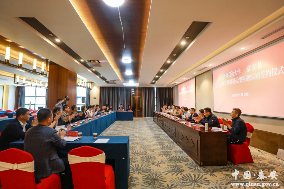 5月28日,西南交通大學(xué)黨委書(shū)記王順洪、黨委副書(shū)記桂富強(qiáng),黨委常委、副校長(zhǎng)朱健梅一行來(lái)秦安縣洽談定點(diǎn)扶貧工作,雙方在大地灣印象酒店就定點(diǎn)扶貧工作簽約。