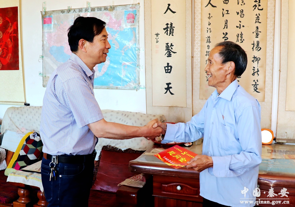 在“七一”即將來臨之際,6月18日,秦安縣政協(xié)主席楊仁義來到王鋪鎮(zhèn)梁峴村、半墩村和馬莊村看望慰問了部分老黨員和困難黨員,給他們送去了黨的關懷和節(jié)日的祝福。
