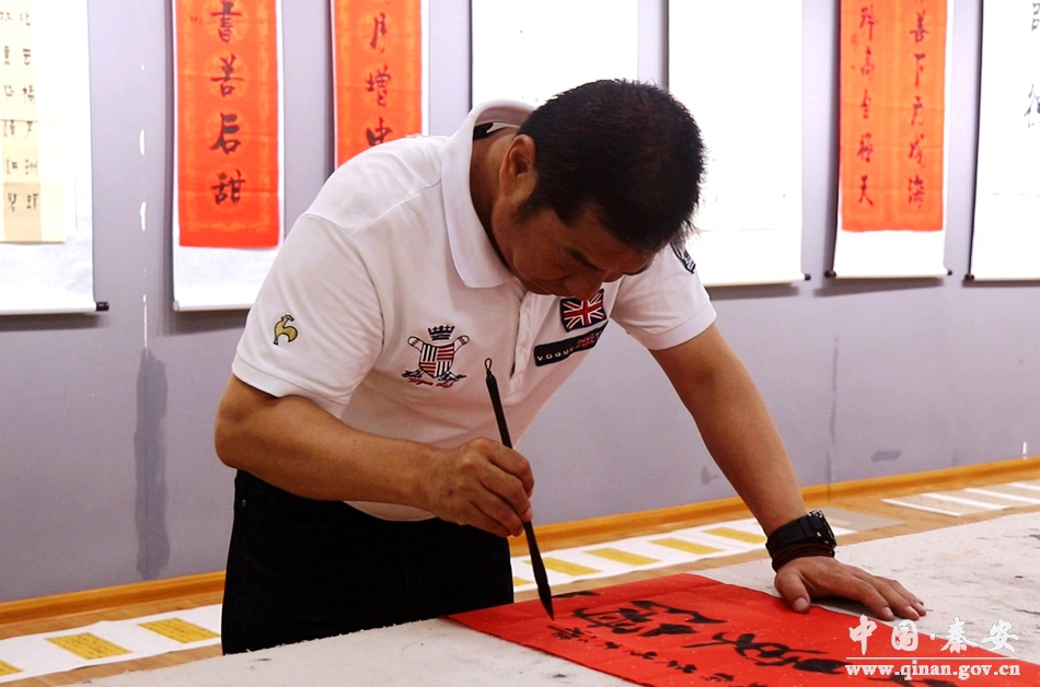 “秦安縣有8000年的大地灣文化,文化底蕰非常深厚。為了弘揚一次中國的傳統(tǒng)書畫,過來這邊辦這次展覽,和秦安的書畫同道交流、切磋,希望秦安縣人民喜歡我的書法作品!碧m州中國畫院副院長楊功說。