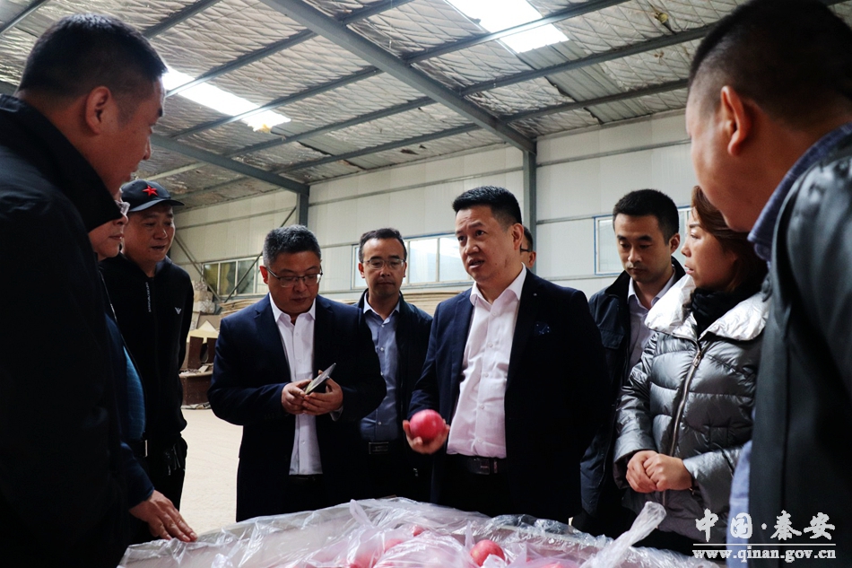 10月11至12日,四川省天府農(nóng)產(chǎn)品冷鏈物流集團(tuán)有限公司總裁尹曼殊帶領(lǐng)考察團(tuán)來秦安縣考察。雙方就進(jìn)一步深化地企合作、實(shí)現(xiàn)共贏進(jìn)行了座談交流?疾靾F(tuán)認(rèn)為,秦安縣的農(nóng)產(chǎn)品品質(zhì)好、產(chǎn)業(yè)發(fā)展水平高,希望以此次考察為契機(jī),把秦安縣的農(nóng)特產(chǎn)品推向四川市場(chǎng),為廣大消費(fèi)者提供更多安全優(yōu)質(zhì)的農(nóng)特產(chǎn)品,助推秦安縣農(nóng)業(yè)產(chǎn)業(yè)快速發(fā)展。