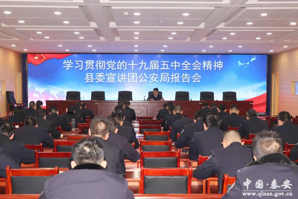 宣講會上,薛天勝從一個充分肯定、一個重要判斷、一個高度評價、六個“十四五”期間經(jīng)濟社會發(fā)展的主要目標(biāo)、八個到二〇三五年要實現(xiàn)的遠景目標(biāo)、十二項項重要舉措等方面講解了十九屆五中全會精神,并就縣公安系統(tǒng)如何結(jié)合工作實際貫徹落實全會精神作了部署。