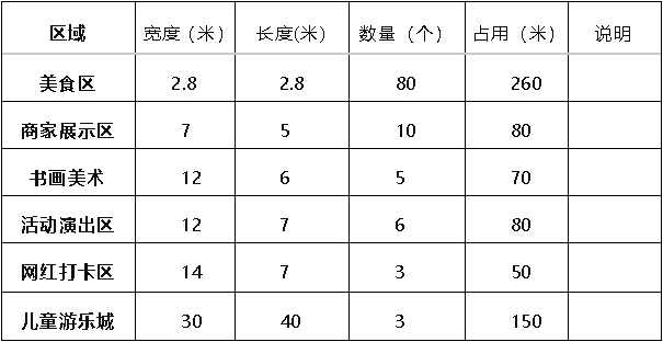 按地域和小吃特色布展,擬設(shè)燒烤區(qū)、手工面食區(qū)、秦安特色小吃區(qū)、冷食區(qū)、地方特色美食區(qū)和國際美食區(qū)等小吃區(qū)域,共30個展位,每個展位2.8m*2.8m。設(shè)置電源、照明區(qū)域和水源,整個活動區(qū)域配備大型垃圾桶,做到全程保潔。