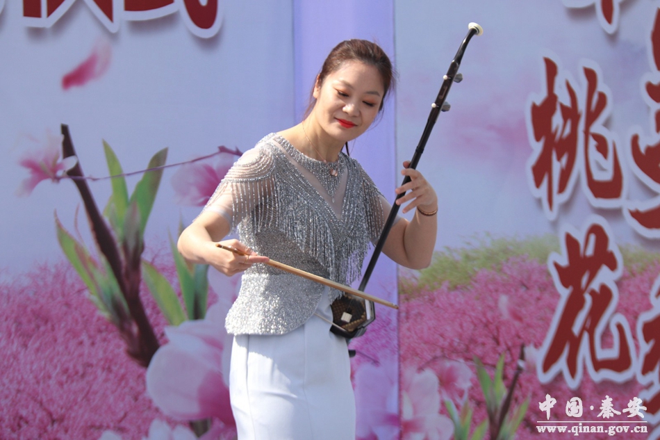 文藝演出在舞蹈《粉墨桃?jiàn)y》中拉開(kāi)帷幕,歌曲《在那桃花盛開(kāi)的地方》、《桃花謠》表達(dá)了對(duì)家鄉(xiāng)對(duì)祖國(guó)的熱愛(ài);富有秦安特色的非遺節(jié)目秦安小曲、秦安羊皮扇鼓舞、秦安蠟花舞等讓外地游客大開(kāi)眼界;蘇州市吳中區(qū)評(píng)彈團(tuán)彈唱的蘇州評(píng)彈《太湖美》,二胡獨(dú)奏《賽馬》及越劇《梁山伯與祝英臺(tái)•十八相送》等經(jīng)典曲目悉數(shù)登場(chǎng),給十里桃鄉(xiāng)增添了十足的文化韻味,為人們帶來(lái)了不一樣的文化體驗(yàn);朗誦《中國(guó)的希望》表現(xiàn)了中國(guó)共產(chǎn)黨帶領(lǐng)中國(guó)人民從貧窮走向繁榮富強(qiáng)的光榮歷程,中國(guó)共產(chǎn)黨就是中國(guó)的希望;原創(chuàng)舞蹈《那片果園那片情》反映了秦安縣大力發(fā)展林果產(chǎn)業(yè)、延伸產(chǎn)業(yè)鏈條、創(chuàng)新?tīng)I(yíng)銷模式,決戰(zhàn)決勝脫貧攻堅(jiān)的生動(dòng)實(shí)踐;秦安實(shí)力派唱將牛民軍、王小梅帶來(lái)的秦腔清唱《楊家將.五郎出家》等經(jīng)典戲曲唱段將現(xiàn)場(chǎng)氣氛一次次推向高潮,贏得觀眾的陣陣掌聲。