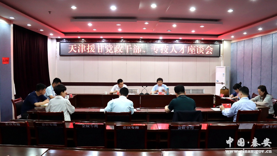 6月1日,秦安縣召開天津援甘黨政干部、專技人才座談會(huì)。天津援甘前方指揮部項(xiàng)目管理組組長(zhǎng)、省發(fā)改委地區(qū)振興處副處長(zhǎng)姜洪海參加會(huì)議并講話。秦安縣委常委、副縣長(zhǎng)、天津援甘秦安縣工作組組長(zhǎng)王育盛參加會(huì)議。