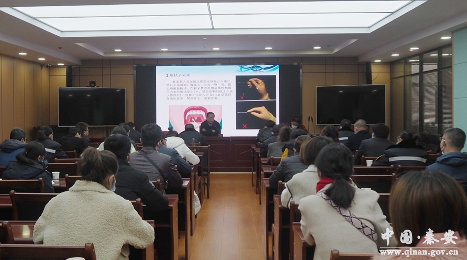 培訓(xùn)班上,秦安縣疾控中心采樣工作人員通過視頻和現(xiàn)場教學(xué),演示了口咽拭子和鼻咽拭子的采集方式,對核酸采樣中的風(fēng)險及應(yīng)對方法進(jìn)行了重點講解,并在現(xiàn)場以自己為采樣對象進(jìn)行了對照采樣實操,確保參培人員熟練掌握操作要點,提升理論水平。