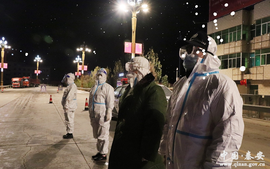 11月6日,夜幕剛剛降臨,風(fēng)雪突至,氣溫驟降,今年冬天的第一場(chǎng)大雪灑落在秦安縣的每一個(gè)角落。在紛飛的大雪和刺骨的寒風(fēng)里,秦安縣公安局民輔警并沒(méi)有因此缺席,始終堅(jiān)守在疫情第一線,以實(shí)際行動(dòng)踐行“疫情當(dāng)前、警察向前”的誓言。