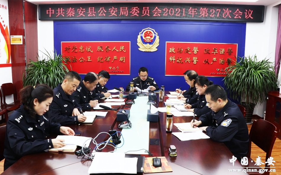 秦安縣公安局召開黨委(擴大)會議,迅速傳達學習黨的十九屆六中全會、縣第十七次黨代會和“兩會”精神,切實把學習好、宣傳好、貫徹好會議精神作為重要政治任務,全力推動會議精神在全縣公安系統(tǒng)落地生根見效。一是融會貫通學。把學習黨的十九屆六中全會精神與習近平總書記關于公安工作的重要論述和重要指示批示精神相結合、與全面從嚴管黨治警的重要論述相結合,充分運用“學習強國”“甘肅黨建”平臺,確保學懂弄通、學深悟透,更好地用以指導實踐、推動工作。二是全員覆蓋學。充分發(fā)揮局黨委理論學習中心組示范帶動和班子成員領學促學作用,堅持集體學習和個人自學相結合,采取民警大會、黨支部學習會、部門學習會等多種形式,確保學習宣傳貫徹黨的十九屆六中全會精神覆蓋到每個黨支部、每名黨員、每名民輔警。三是宣傳宣講學。統(tǒng)籌抓好網上網下宣講活動,有計劃地開展黨員領導干部帶頭講黨課活動,幫助廣大黨員和民輔警深化對全會精神的理解把握;充分依托新媒體網絡矩陣,及時總結宣傳學習貫徹全會精神的好經驗好做法,在全系統(tǒng)營造濃厚的學習宣傳氛圍。四是貫徹落實學。立足公安實際,結合貫徹十九屆六中全會和縣黨代會精神,緊緊圍繞維護安全穩(wěn)定、百日攻堅等重點任務,推動各項業(yè)務往實里抓、向目標奔,全力以赴做好防風險、保安全、護穩(wěn)定各項工作,確保今年收好官、明年開好局。