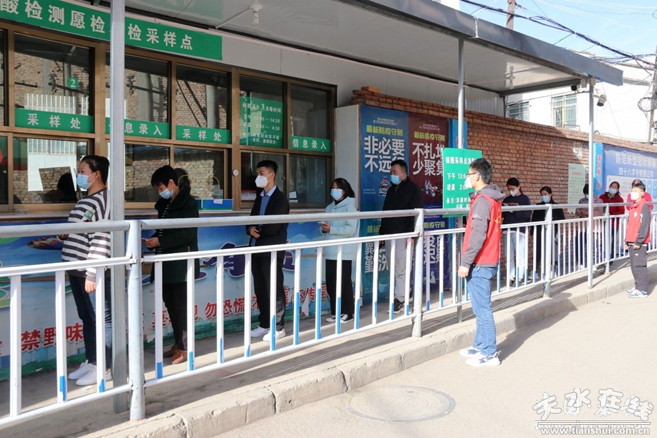 在秦安縣人民醫(yī)院、中醫(yī)醫(yī)院等核酸采樣點記者看到,前來采集核酸的市民按防疫要求保持安全距離,有序排隊等候檢測,現(xiàn)場秩序井然。醫(yī)務(wù)人員身穿防護(hù)服嫻熟地采樣,整個采集過程高效有序。一旁穿著“紅馬甲”的志愿者積極引導(dǎo)群眾有序排隊,并協(xié)助群眾進(jìn)行信息登記、掃碼查驗工作。