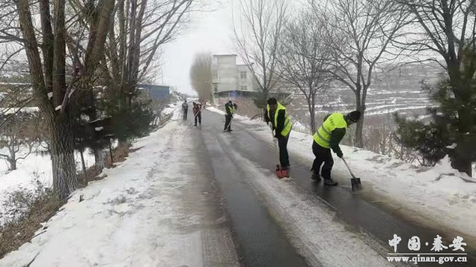 為確保農(nóng)村公路安全暢通,秦安縣交通運(yùn)輸局迅速啟動(dòng)雨雪冰凍天氣應(yīng)急預(yù)案,開展除雪保通工作,組織人員及機(jī)械在候王公路、寺魏公路、仁葉公路等七條重點(diǎn)路段開展清除路面積雪,在易結(jié)冰路段、急彎陡坡事故易發(fā)路段撒防滑砂、融雪劑。