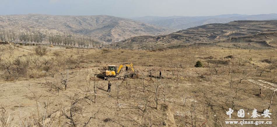 在王尹鎮(zhèn)胡坪村、趙梁村、陶楊村等村,機械車在田間地頭穿梭,果農們來回折返,扛大枝、理細條、挖樹根……老舊果園提升改造工作就此展開!拔覀兊墓麍@要被挖改了,這可是我們全家最歡喜的一件事情,以后種上優(yōu)質的果樹,我們的收入就增加了……”王尹鎮(zhèn)胡坪村果農胡元太扛著被挖出的樹根,滿臉笑意。