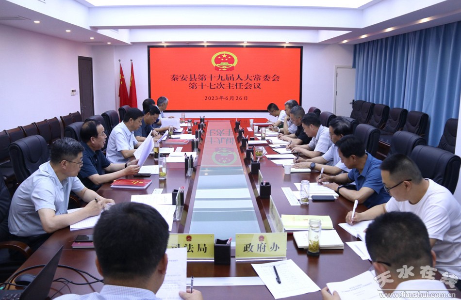 6月26日,秦安縣人大常委會(huì)主任馬順祥主持召開縣十九屆人大常委會(huì)第十七次主任會(huì)議?h人大常委會(huì)副主任吳建忠、李永忠、孫旺奎、胡繼仁、王優(yōu)峰參加會(huì)議,縣政府辦公室、縣司法局、縣人大常委會(huì)辦公室、各工委負(fù)責(zé)人列席會(huì)議。