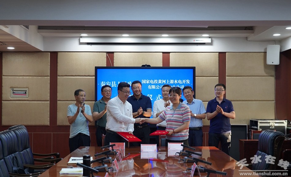 9月13日,秦安縣人民政府與國(guó)家電投黃河上游水電開(kāi)發(fā)有限責(zé)任公司西寧分公司(以下簡(jiǎn)稱(chēng)黃河公司)簽訂《新能源發(fā)電項(xiàng)目合作框架協(xié)議》。國(guó)家電投黃河公司黨委書(shū)記程斌,發(fā)展部主管姚有成,中國(guó)安能集團(tuán)第一工程局有限公司副總經(jīng)理王平武,市場(chǎng)經(jīng)營(yíng)部部長(zhǎng)張喜春,秦安縣委副書(shū)記、縣長(zhǎng)王龍強(qiáng),縣政府副縣長(zhǎng)車(chē)曉珍及相關(guān)部門(mén)負(fù)責(zé)人參加簽約儀式。