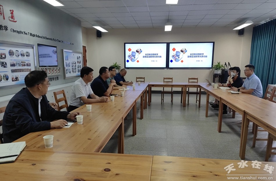 王龍強(qiáng)一行通過深入課堂、座談交流、聽取匯報(bào)等方式,與成都七中、隴南一中進(jìn)行了深層次溝通對接,觀摩學(xué)習(xí)了網(wǎng)課直播先進(jìn)經(jīng)驗(yàn),詳細(xì)了解了師生線上線下交流互動、師資隊(duì)伍培訓(xùn)、學(xué)生社團(tuán)活動、課程教研、備課授課等內(nèi)容,深入探討交流中小學(xué)教育教學(xué)管理工作經(jīng)驗(yàn),并就下一階段的合作交流達(dá)成共識。