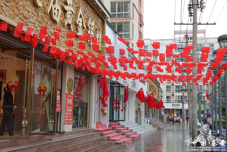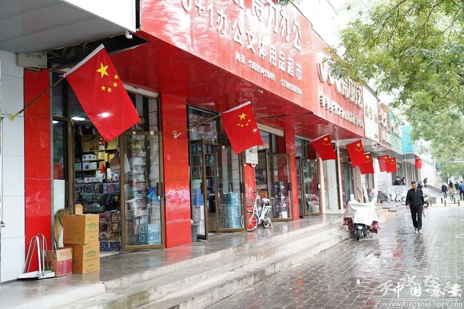 在城區(qū)各交通干道、商業(yè)街、公園廣場、學(xué)校等地方全部懸掛起鮮艷的五星紅旗。一抹抹絢麗的“中國紅”,成為廣大市民對祖國母親表達(dá)深厚情感和祝福的最有效、最直接方式。