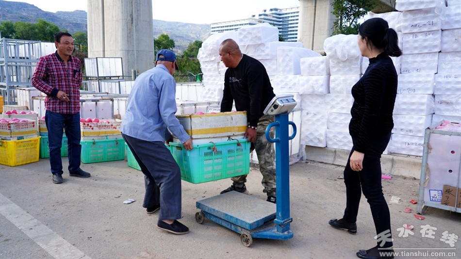 “我們的收購量每天在十幾萬斤左右,收購的蘋果有紅富士、花牛、黃元帥等。我們秦安縣的蘋果質量比較好,糖度比較好,蘋果中屬于上乘,現(xiàn)在收購完了以后經(jīng)過分揀、包裝等一系列操作,然后供往全國各大市場,主要的市場有新疆、浙江、北京、鄭州,每年的收購和銷售量大約在一百多萬噸!碧O果收購商楊福杰介紹道。