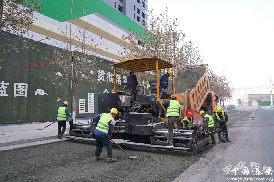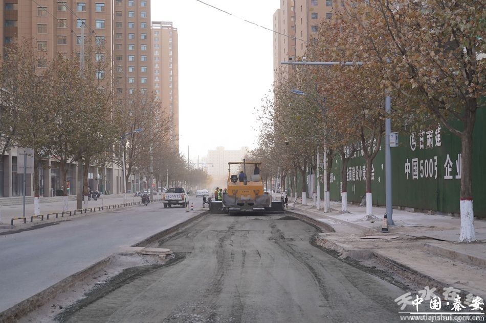 在康莊路施工現(xiàn)場記者看到,供排水管網(wǎng)已施工完畢進(jìn)入路面恢復(fù)階段,大型攤鋪機(jī)、壓路機(jī)、運(yùn)輸車來來往往正在緊張施工中。