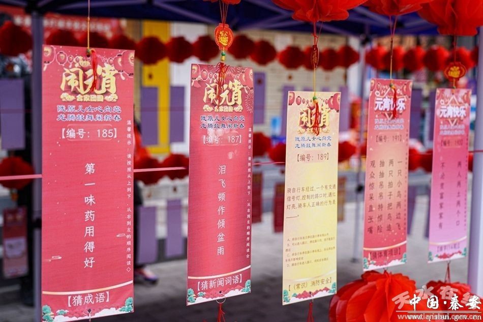 正月十五鬧花燈,多姿多彩耀民生。“猜燈謎”是元宵佳節(jié)的重要習俗之一,歷史悠久,內涵豐富。在秦安縣2024年鬧新春趣味燈謎年俗文化活動現(xiàn)場,掛滿了五彩繽紛的燈謎紙條,謎題內容豐富多樣,涵蓋了文化、歷史、生活等多個領域,知識面廣、趣味性強,大家你一言、我一語,興致勃勃,各顯其才,看燈謎、猜謎底、領獎品,現(xiàn)場洋溢著歡樂、祥和、喜慶的節(jié)日氣氛。