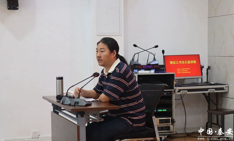 本次活動由秦安縣文學(xué)藝術(shù)界聯(lián)合會主辦,秦安縣書法家協(xié)會承辦。12日下午,郭忠之作了《如何正確的學(xué)習(xí)書法》專題講座,詳細(xì)講解了學(xué)習(xí)方法和用筆技巧,并通過大量實例對用筆、字法、字內(nèi)空間等書寫特點進行了詳細(xì)分析和深入介紹,為大家梳理出了在臨帖中應(yīng)該注意的要點和書寫方法,受到書法愛好者的拍手稱贊。13日上午,郭忠之對自我定位進行了講解并點評了秦安縣書法愛好者的書法作品,對每一幅作品都提出了寶貴意見。