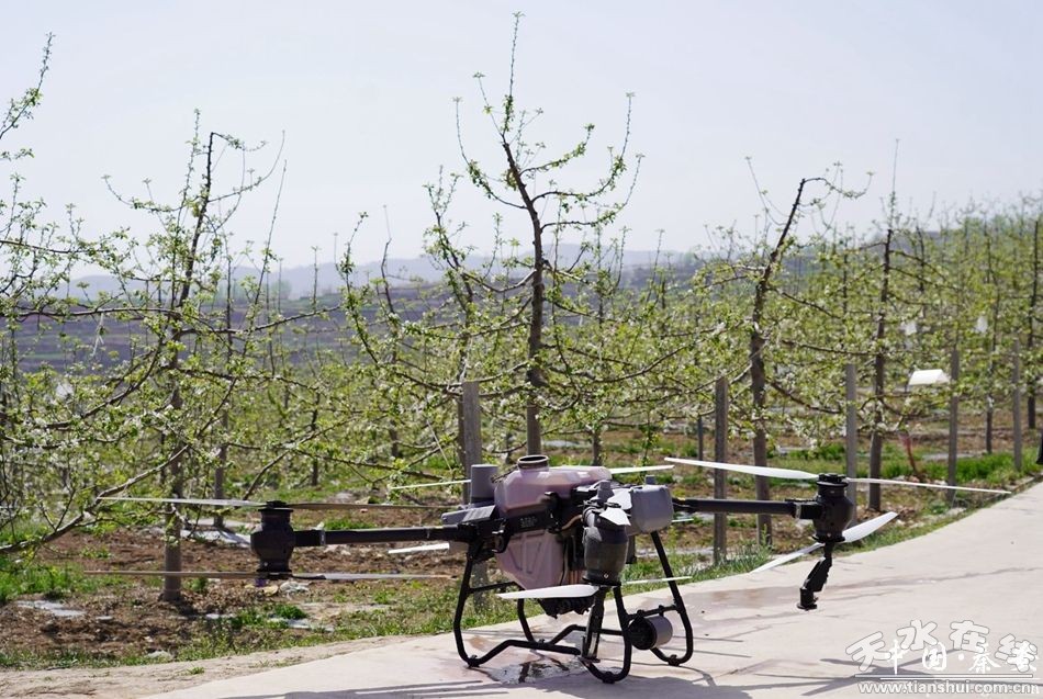走進(jìn)閆家溝農(nóng)業(yè)專業(yè)合作社蘋果種植基地里,濃濃花香撲鼻而來,繽紛的蘋果花如云如霧繚繞枝頭。農(nóng)業(yè)服務(wù)公司的工作人員正在使用植保無人機(jī)正對(duì)蘋果樹進(jìn)行病蟲害防治作業(yè),通過科技手段助力田間管理,促進(jìn)農(nóng)業(yè)生產(chǎn)提質(zhì)增效。